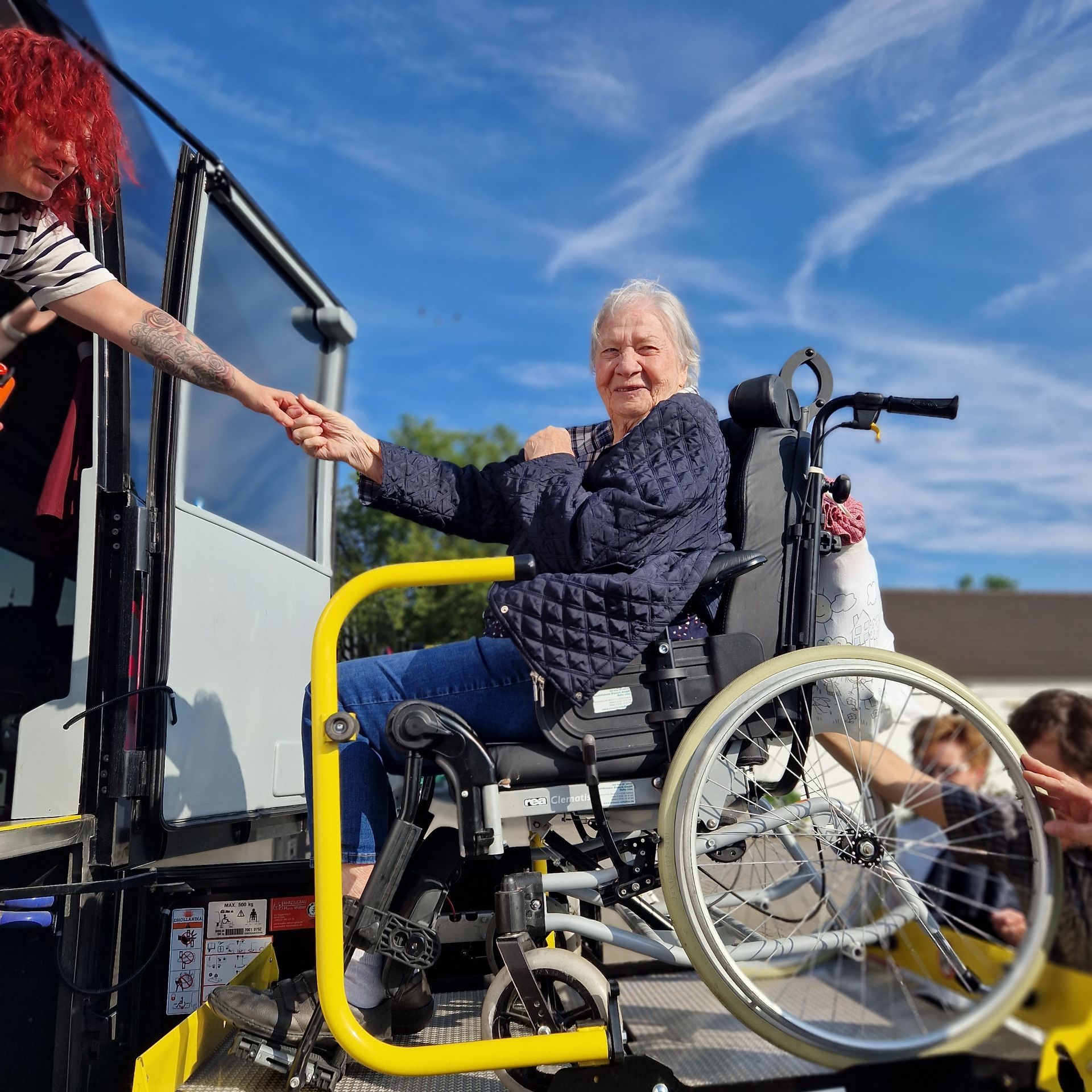 Einmal im Jahr wird ein großer Tagesausflug geplant. Dazu wird ein barrierefreier Bus gemietet, um auch Bewohner, die auf den Rollstuhl oder Rollator angewiesen sind eine Teilnahme zu ermöglichen.